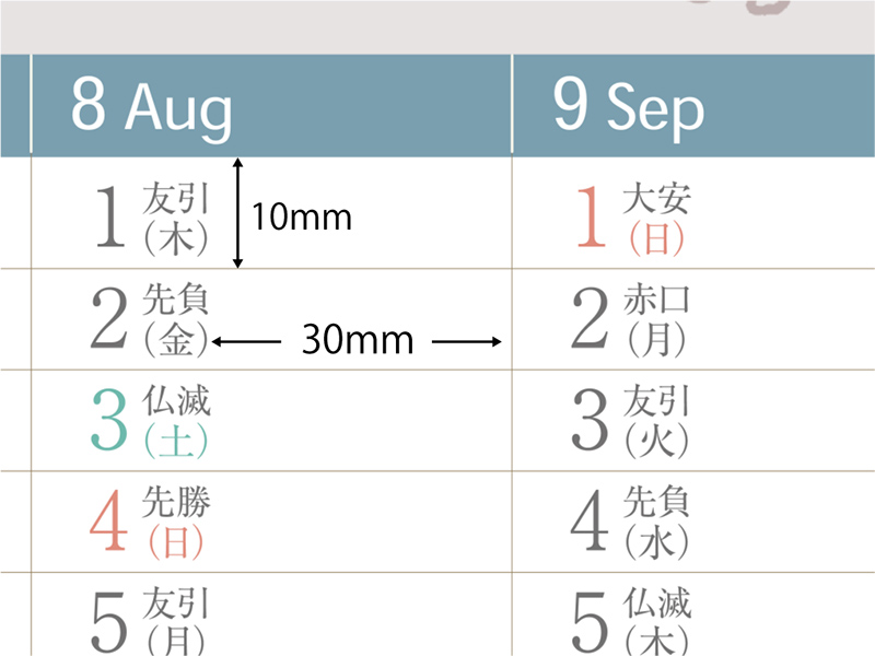 このカレンダーのサイズは幅59.5cm×縦42cmで、