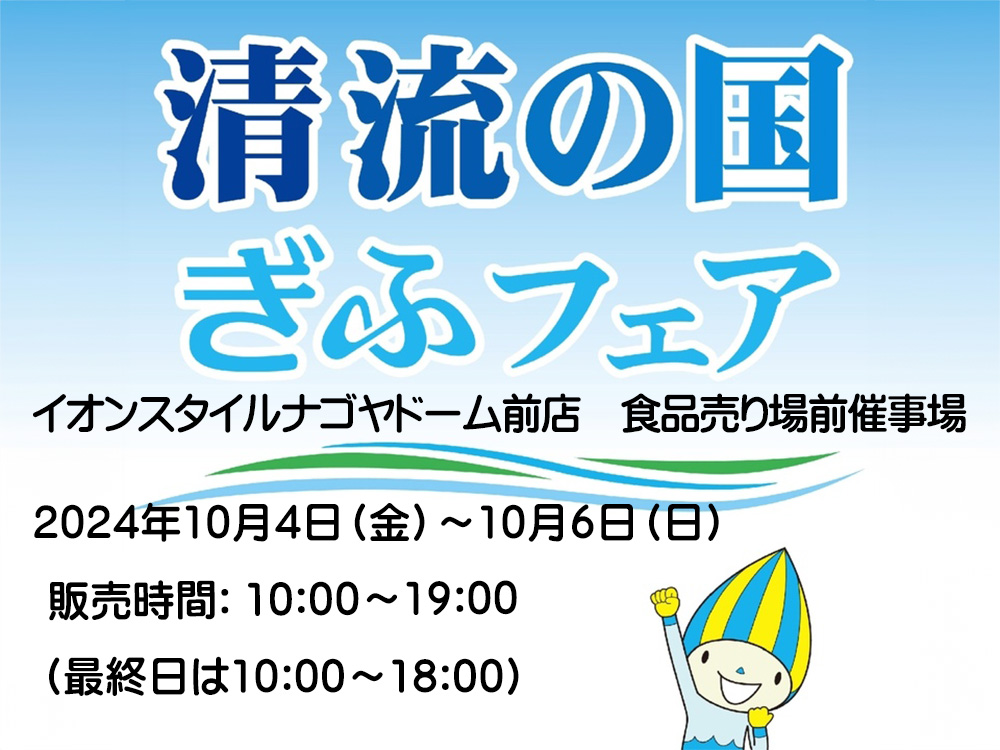 **令和6年度「清流の国ぎふフェア」**が、10月4日(金)から10月6日(日)までの3日間、イオンスタイルナゴヤドーム前店の食品売り場前催事場で開催されます🎉。このフェアでは、岐阜の魅力が詰まった商品が勢ぞろいします。
