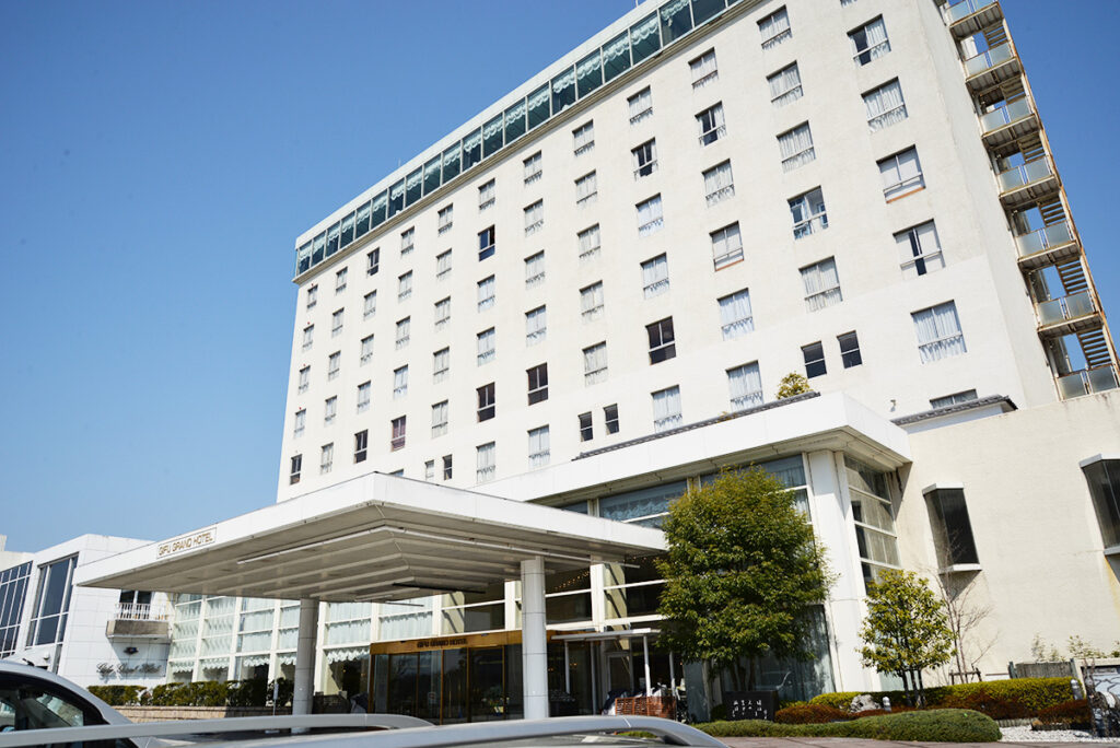 岐阜グランドホテルに到着!青空の下、穏やかな風が心地よく吹き抜けます。ホテルの外観からは、どこか和やかな雰囲気が漂っていますね。
