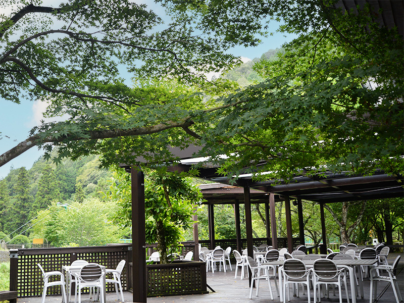 香恋の館は、豊かな自然に囲まれたとっても素敵な場所なんです。到着してまず驚いたのは、その涼しさ!体感的に、街中よりも2〜3℃も涼しく感じるんです。木陰を吹き抜ける風が心地よく、まさに夏の避暑地にぴったり。