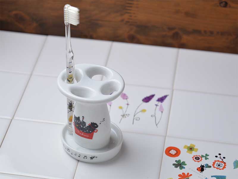 ハブラシスタンド: 毎日の歯磨きが楽しくなる!猫のイラストが描かれたハブラシスタンドで、日々のケアタイムを特別なものにしましょう。